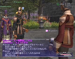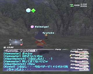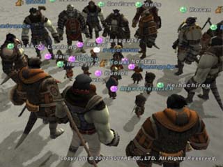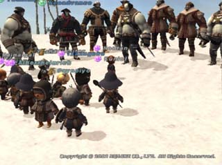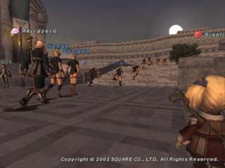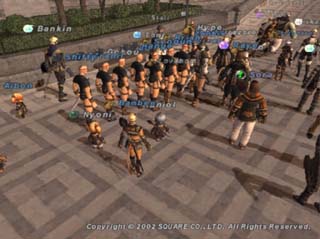 どこまでも続くハゲ親父の行列。というかル・ルデを一週しているもよう(^^;)。さらにこの後、全員詩人だったらしく、演奏会をやったとかやらないとか。凄いですね、ちょっと入ってみたい(w。 サーバー分割の時に移行してしまったという噂を聞きましたが、今はどうしてるんでしょうね〜。 |