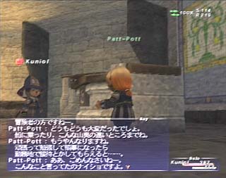 ウィンダスに戻ってちょっとしたお金稼ぎ&名声上げです。これはギデアスの奥地にある泉で、ウィンダス水の区で受けられるクエストでここの水を取ってこいというのがありますです。デジョンを使えば時給が確実に3600ギルで、名声も上がるのでオススメ(^^)。 |