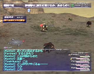 途中、敵に絡まれて死んじゃいました、えへ。 白魔さんがレイズをしてくれようとするのですが、周りに敵が沢山いてなかなか上手くいきません(>_<;;)。 |