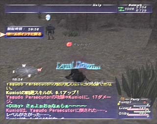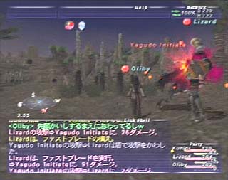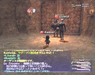 ウィンダスから泣きながら走って戻って、ようやく終えることが出来ました。 LizardさんのHPが減ってますが、この後、案の定死んでしまわれたようです(^^)。 |