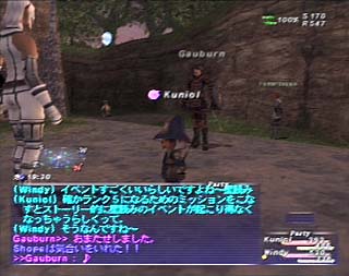 ウィンダス森の区で募集してみると、WindyさんとGauburnさんのコンビが来てくれました!Kuniolは黒魔、Windyさんは白魔で、Gauburnさんは赤魔に転職して、めでたく赤白黒の3種の魔道士が揃いました(^^)。 |