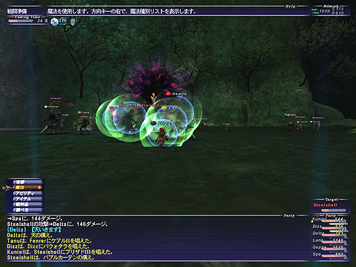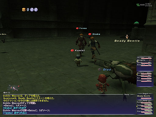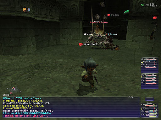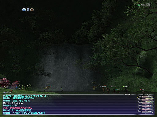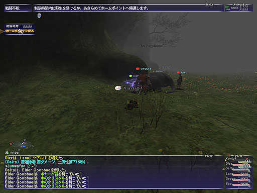 滝前があまりに混んできたので、場所を移動してドーモ君ことグーブーを狩る事に。墨の僕が回復をし、ボケてきた臼のDizzさんがバニシュで削る作戦です(´w`)。 |