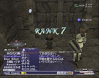 最後は天の塔に行ってCrarisさんと共に神子様に報告。罪を許された上、40000ギルとランク7の称号まで受け取れましたっ。 |