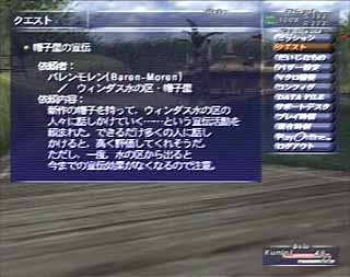 FF XIではクエスト用のウィンドウがあります。DAoCのクエストウィンドウのように展開するに従って文章が変わることはないのですが、オファーリストとコンプリートリストもあります。 特にこなしたクエスト数が発動条件になっているクエストもあるようなので、コンプリートリストもあるのは助かります。そう言った意味では、展開に従って文章が変われないのは仕方がないのかも知れませんね。 |