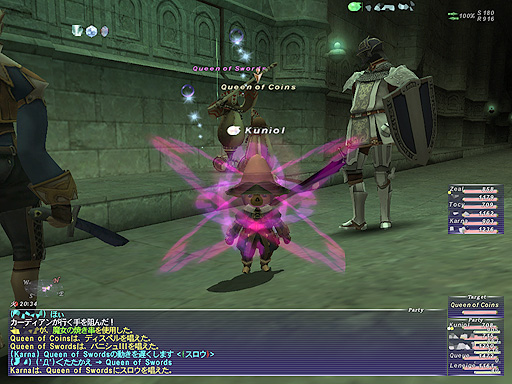 外人さんの死亡メッセージを尻目に、早速戦いを始めます!!扉を開けようとすると、カーディアンが現れます。敵はクイーン型カーディアン2体です。たしかナイトと赤魔道士だったと思います。 |