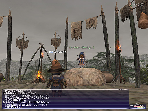サンドリア軍に協力してあげているようですな!さすがウィンダスの院長の一人、その魔力は非常に強く、オークの王を封じ込めているようです。あのバリアは、こいつが仕掛けていたのですな。 オークの呪術師が彼に邪念を送り、妨害しているそうなので、とにかく彼を助けねばなりません。 |