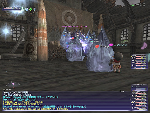 ファイガIIIといった、範囲に数百ダメージは与えてくる魔法を連発してくる強敵です。みんなと一緒に殴っていたZealさんは、ファイガIIIの餌食になっておりました(w。 |