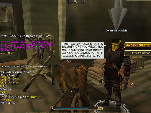 フリーポートに着いて、周りを見渡すと、役人っぽいイクサーがいたので話し掛けてみました。僕の嫌いなタイプです。 |