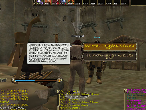こちらはトロルの伝承を話してくれるNPCです。僕がEQ1を止めた後、トロルの街はフログロックに攻め落とされたらしいですね。フログロック達が死んだ事自体にもちゃんと悲しんでいるところに、トロルのちょっとだけある優しさが垣間見える気がします☆ |