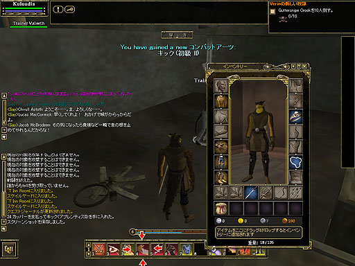 EQ2では、技を覚えた後も、その技をアップグレードしていくことができます。アップグレードさせるためのアイテムは、NPCが売っていたり、敵が落としたり、プレイヤーが生産で作成したりしています。一番最初のアップグレードはお店で買えるので、早速買ってみました。 |