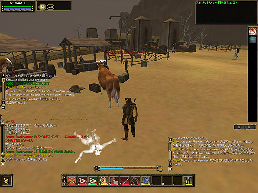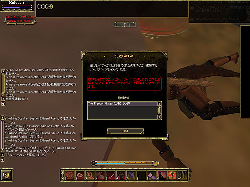 コモンランドにある、クロスロードという小さな街に辿り着きました。 皆さん、気を付けてください!コモンランドにいる一部のガードは、ダブルクリックで攻撃できてしまうため、レベルが低いとこのようにぶっ殺されます(w。話し掛けたい時は、Hキーで挨拶しましょう(´・ω・`)。 |
