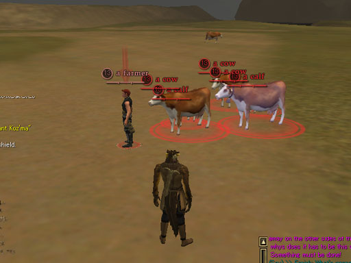 こちらは牛飼いの農民です。どうやら敵のようですが、倒しても大丈夫なんでしょうか?Factionが下がったりしないのかな?? |
