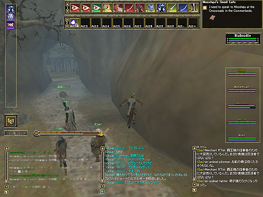 グレイヴヤードというフリーポート近くの墓場でLFG (Looking For Group) を出しながらクエストをしていたところ、グループに誘われました!この時点で構成員が5人と、なかなかの大所帯です :)。 |