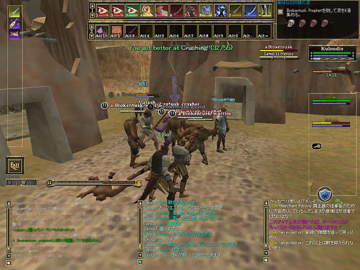 しばらくは順調に倒せていたものの、手強いオーク共に負けて情けなく退散するKuloudis。タンクとして恥ずかしくないのか(`w´)。 しかし、なんだかんだでクエストの敵も倒せましたし、楽しく遊べました\(^-^)/。 |