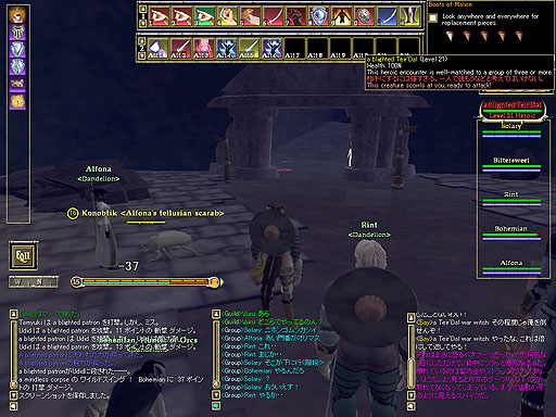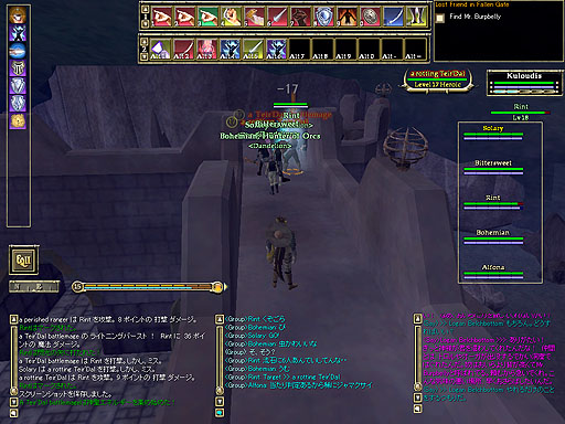 フォールンゲートへのアクセスクエストをやっていなかった人達もクエストを完了させ、いよいよフォールンゲートに乗り込む事になりました。と、道中、Gix様を発見したので、ボコボコにしてあげました。Zytl様もEQ2に出して欲しいです(いるのかな?)。 |